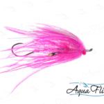 Jerry’s newest intruder design utilizing the Ultra Rig. The Ultra Rig is a new system to rig shank flies with a trailing hook. The Ultra Rig is made with 50 pound Spider Wire, Ultra Tubing and a size 2 AquaTalon hook. This rigging system eliminates the use of wire as a trailing loop. The Ultra Rig system allows the angler to change out the hook without damaging the fly or the trailing loop. The only commercially tied fly with this rigging system.  In addition to the rigging system, this intruder is tied using an Aqua Flies Shank, Aqua Flies Intruder Eyes and the Aqua Flies Un-Real Jungle Cock.
