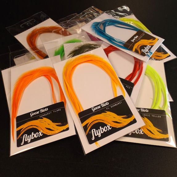 Our new UV Goose Biots are dyed with ‘light optimal’ dyes in addition to fluorescent dyes to make the feathers highly UV reactive and perfect for tying competition flies.