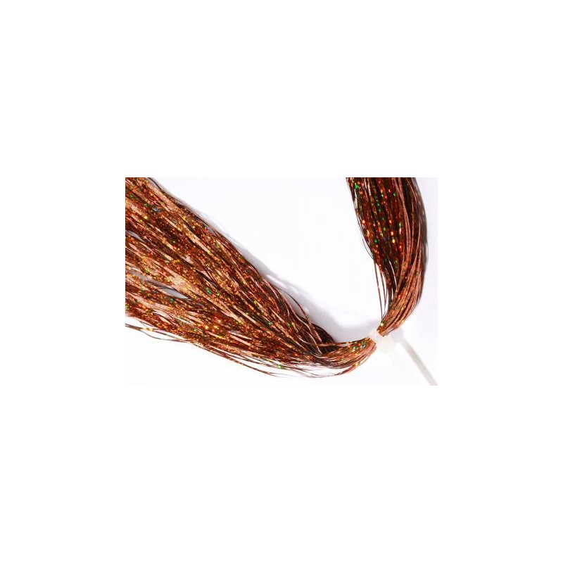 The extreme 3D color effect added to Flashabou original in a wider and stronger cut. Contains approximately 400 strands, 1/32″ wide by 20″ long.