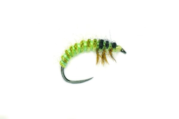 Oliver Edwards says ” This copies the popular free-living green rockworm caddis larva and is another must have pattern”