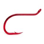 Super sharp beaked point, extra strong forged offset bend with an upeye. Red trigger colour makes it a perfect combination with Intruder patterns for Salmon and Steelhead.