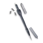 Precision cutter indispensable for the finishing of your flies. At the other end the tool is equipped with a short and sharp needle in stainless steel useful when tying. Supplied with three spare blades.