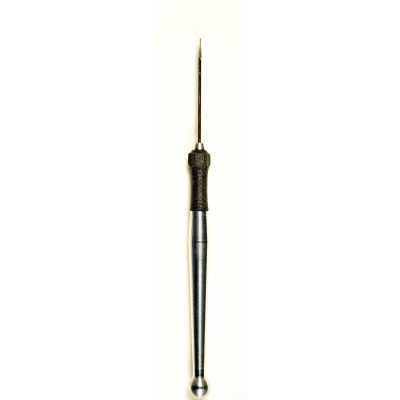 Bodkin with soft touch handle. Specially designed shape so that the tool will not roll off the tying table.