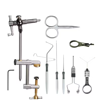 Complete set which includes a Flylab vise and 7 fly tying tools. Supplied in a strong case whose rubber interior is shaped to give each tool a precise housing. Contents: Flylab vise, small Scissor, Bobtec1 bobbin with adjustable thread tension, Bobbin threader, Finisher-Conical finisher, Bodkin, Hackle pliers, Rotodubbing mini, Allen Key. Inside detailed instructions of the vise and various tools.