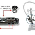 It clamps to a vice allowing the positioning up to four accessories at the same time. Fits on vise stems from 8 mm to 10 mm ( 3/8″). Supplied with 8 mm adaptor bush and allen key.