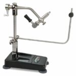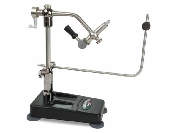 High quality in-line 360° rotary action vise for tying flies and streamers. The stainless steel shaft rotates through two precision ball bearings. Hook locking by lever device. Adjustable rotary tension. Locking of the head 0°. Compact and lightweight. Equipped with pedestal base, C Clamp (suitable for any table top up to 50 mm thick), 3 interchangeable hardened steel jaws, bobbin and parachute rest, centering gauge, spring material clip, allen key and instruction manual.