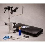 Spider vise, c-clamp and bobbin cradle, our Supreme ceramic bobbin, a regular hackleplier, Regular hair evener, Standard scissor and Bodkin.