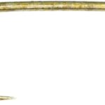 This barbless Tiemco fly fishing hook is straight and has a super point, down eye, 1X heavy wire, 1.5X wide, bronze; Uses: dry flies. 25 per pack