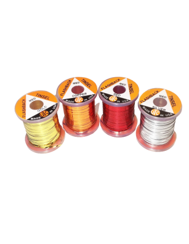 Flashback tinsel great for use on flashback nymphs. Medium size 1/32″ for hook sizes 16 to 22 and Large size 1/16″ for hook sizes 14 to 6