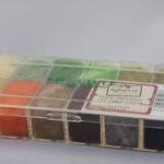 Caddis 12 colour dispenser. Cream, Yellow, Caddis Orange, Gray, Tan, Ginger, Brown, Light Olive, Pale Green, Bright Caddis, Caddis Green, Olive, Black