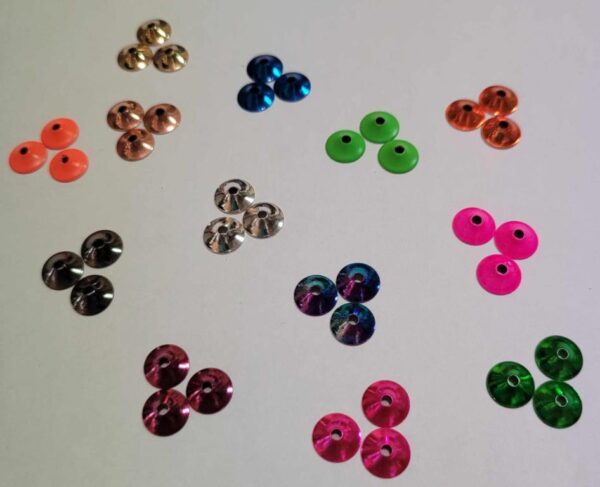 Turbo Discs are an attractive addition to any tube fly and cause the winging materials and hackles to come alive and breathe in the current. Turbo Discs are offered in both 8mm and 10mm. The bore fits perfectly with our 1.8mm Euro Tubing, with powder coated and metallic finishes to match any color scheme an angler could want.