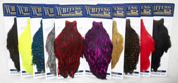 Saltwater and Warm water flies have never seen better! Whiting’s Genetic American fly tying feathers were specifically engineered to provide the best saltwater and warm water large feather hackle necessary for the rigors of tying and fishing large flies. American feathers provide a stiff quill, dense barb and webbing and superbly dyed colorfast-colors perfect for saltwater and warm water applications. Whiting was the first to offer genetic saltwater and warm water tying feathers.