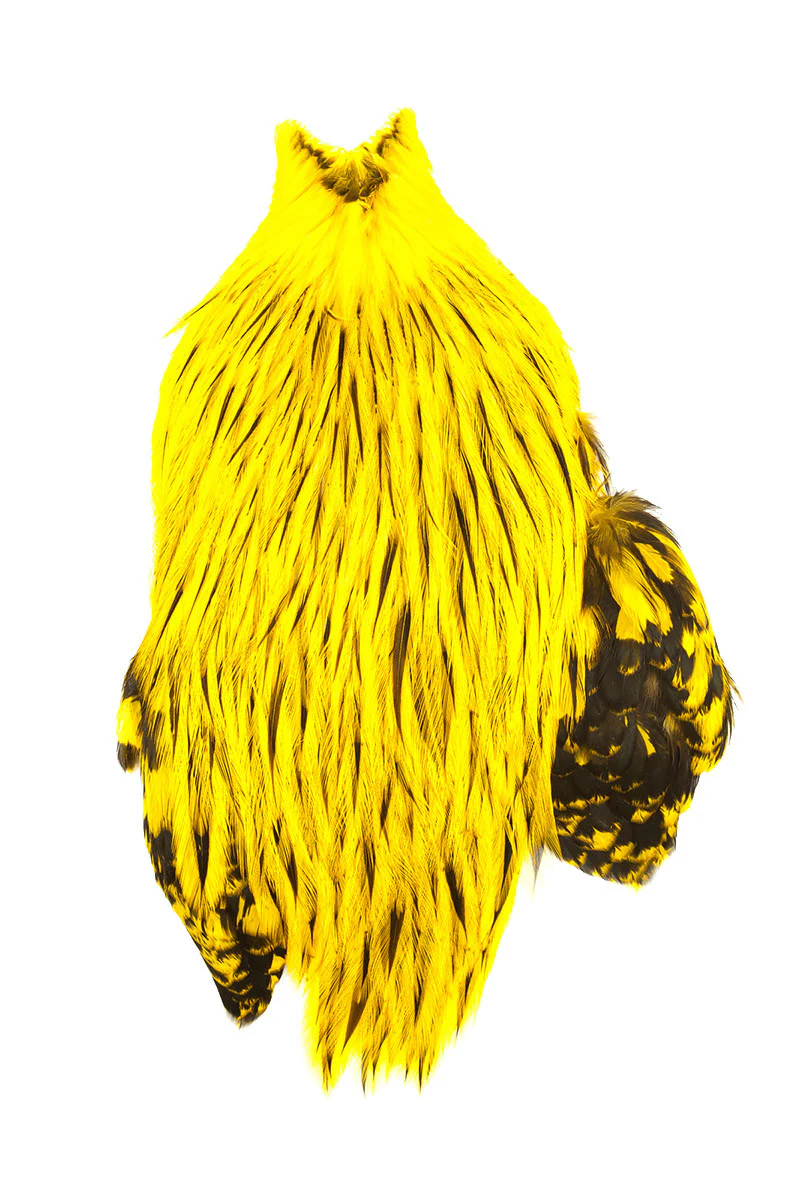 Add another EDGE to your steelhead flies with these awesome new capes from Whiting Farms! These large, stiff feathers are perfect for collars, wings, etc. These jumbo capes have a full range of sizes and the markings are clean and distinct.