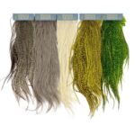 Whiting Farms’ High & Dry rooster half saddles are developed from their Hebert/Miner genetic pool and provide dry fly hackle close to the quality of the Whiting Dry Fly Hackle bronze grade at a savings of more than 15%. High & Dry saddles have dry fly feathers in the range of 10 to 16, with sizes 12 to 14 predominant. They are available in the most popular dry fly natural and dyed colors and grizzly capes are now dyed in great colors for steelhead patterns.